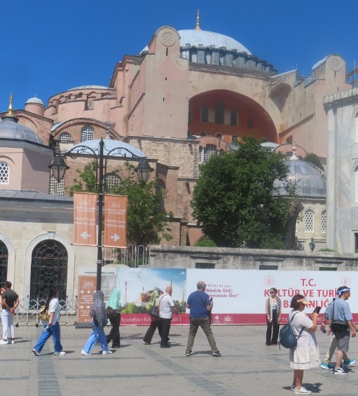 Παραδίπλα μας εκατοντάδες πιστοί μουσουλμάνοι περίμεναν υπομονετικά να μπουν στο τζαμί “Ajasofia” για την απογευματινή προσευχή τους. Η μετατροπή της Αγιά Σοφιάς σε μουσουλμανικό τέμενος είναι προφανώς ζήτημα ένδειξης κυριαρχίας, αλλά και φθόνου, με καθοριστικά σημειολογικά χαρακτηριστικά και όχι τόσο ζήτημα πίστης στον Αλλάχ, όπως ισχυρίζεται ο ισλαμιστής κι εθνικιστής Ερντογάν.