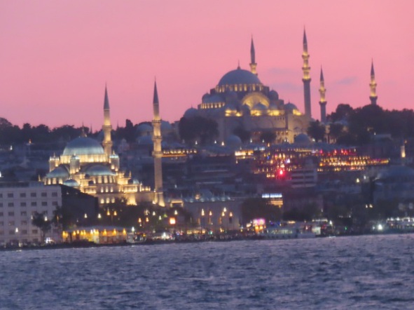 Υ. Γ. Οι φαντασμαγορικές εικόνες του απόβραδου κατά μήκος της ακτογραμμής του Βοσπόρου ήταν συνυφασμένες με τις προφανείς σημειολογίες του φωτισμού των μνημείων της Πόλης. Εύκολα διαπιστώνει κανείς με πόση μεγαλοπρέπεια φωτίζουν οι Τούρκοι τα τζαμιά τους και οτιδήποτε οθωμανικό στην Πόλη.
