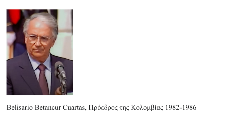 Επτά χρόνια μετά, στην Μπογκοτά, έξι ώρα το πρωί, ο Belisario Betancur που είχε εκλεγεί πρόεδρος της Κολομβίας, υποδέχτηκε τον Μίκη και την ορχήστρα στο αεροδρόμιο: «κ. Θεοδωράκη, σας καλωσορίζω στην Κολομβία. Να αισθάνεστε όπως στο σπίτι σας!» Στην συναυλία πήραν μέρος τρεις μεγάλες χορωδίες. Στην πρεμιέρα ήρθε ο Πρόεδρος και μαζί του όλοι οι πρώην πρόεδροι της χώρας. Ήταν μία ακόμα αξέχαστη συναυλία στην Λατινική Αμερική. Στο προεδρικό Μέγαρο που έγινε η δεξίωση, έμοιαζε με τις Βερσαλλίες, ήρθε όλη η αριστοκρατία της Μπογκοτά. Τότε ο Πρόεδρος μίλησε στους προσκεκλημένους για την υπόσχεση στον Μίκη στο στάδιο Καραϊσκάκη. Όλα φαινόταν απίστευτα…