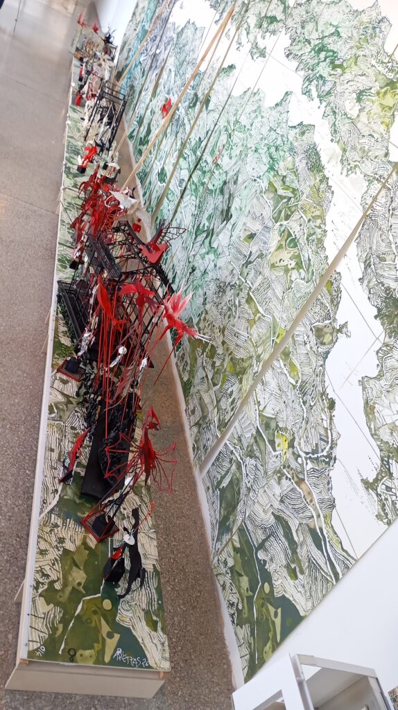 Στο Μουσείο Βορρέ, ο Απόστολος Βέττας ξετύλιξε -τί άλλο;- τις εικαστικές του εμμονές συνδυάζοντας την θεατρική μακέτα, τις τρισδιάστατες κατασκευές επάνω σε ένα είδος παλκοσένικου και πολυάριθμα πανό, που κρέμονταν στον τοίχο σαν το φόντο ενός τεράστιου πίνακα και ανέμιζαν στον άνεμο σαν τεράστια ειλητάρια.