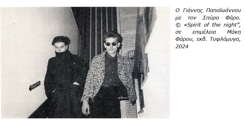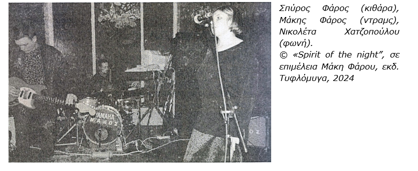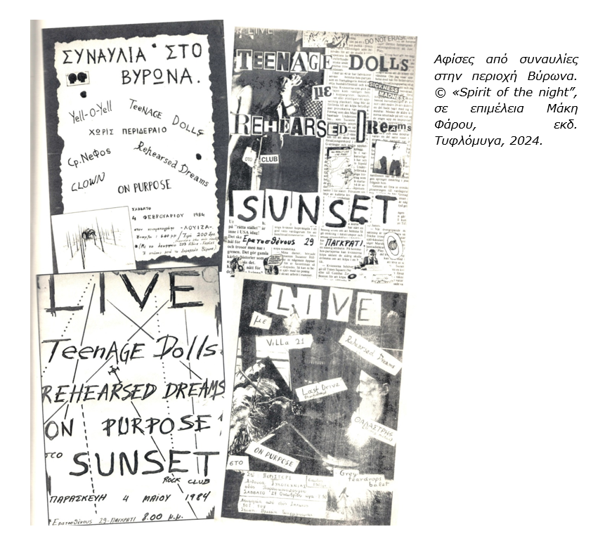 Αφορμή για το εγχείρημα αυτό υπήρξε ο θάνατος ενός σπουδαίου μουσικού εκείνης της εποχής από τον Βύρωνα του Σπύρου Φάρου. Ορισμένες εκδηλώσεις πραγματοποιήθηκαν στη μνήμη του και φυσικά το βιβλίο-προσέγγιση στη ζωή και το έργο του “Spirit of the night” από τις εκδόσεις Τυφλόμυγα, σε επιμέλεια Μάκη Φάρου. Επιτρέψτε μου να το αφιερώσω στη μνήμη του. Μαζί του σε όλα τα παιδιά από εκείνες τις παρέες που βιάστηκαν να κατέβουν από τη σκηνή. Στον Μάκη Κατεινά, φυσικά.