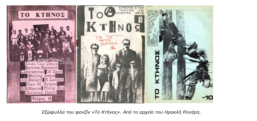 Αρχές του 1980 στα ίδια μέρη με τους Σπύρο & Μάκη Φάρο, κινείται ο Ηρακλής Ρενιέρης, που συμμετείχε σε τοπικά γκρουπάκια, όπως ήταν οι “Burning Sisters” (μαζί με τον Πάνο Λουκά) και η “Φράξια”. Στην τελευταία παίζανε αργό punk rock με ελληνικό στίχο, αλλά προτείνανε και μια ορχηστρική διασκευή του House of the rising sun. Το πρώτο σχήμα έβγαζε ένα πιο ωμό industrial ήχο. Το μεγάλο του μεράκι ωστόσο ήταν τα αυτοσχέδια περιοδικά, φανζίν, όπως επεκράτησε να λέγονται, αν και τότε δε νομίζω πως τουλάχιστον εγώ γνώριζα τον όρο. Αντιπεριοδικά τα λέγαμε ή Αντιεφημερίδες… Κάπως έτσι.