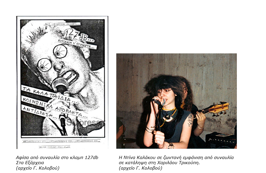 Από την Καισαριανή ήταν επίσης το punk, αλλά με ελληνικό στίχο και έντονες πολιτικές αναφορές, γκρουπ, “Κοινωνικά απόβλητα;”, που το αποτελούσαν παιδιά από το Γενικό και το Τεχνικό Λύκειο της περιοχής. Εμφανίζεται γύρω στα τέλη του ’80 και καταγράφεται δισκογραφικά με το Κοινωνικά Απόβλητα; / Eitilop Pots – Retous Metamodernus!, Wipe Out! Records, 1989 και το ΑΝΤΙ… / Κοινωνικά Απόβλητα; – Μουσικά ΑΝΤΙδοτα / Άγρια Νεολαία, wipe out! records, 1990. Μέλη του οι: Γιάννης Ντζαμίλης (μπάσο-φωνή), Γιάννης Κολοβός (ντραμς), Αντώνης Κυριακός (κιθάρα), Ντίνα Καλάκου (φωνή) και ο Γιώργος Κουτσοδιάκος (κιθάρα).