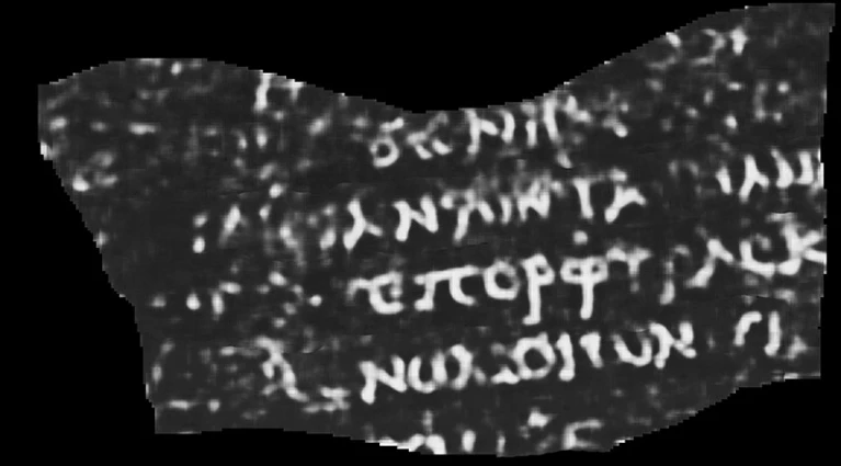 Η πρώτη λέξη που κατάφερε να διαβάσει ο φοιτητής με την τεχνική που εφηύρε ήταν ελληνική: “πορφύρας”. Πιθανόν πρόκειται για αναφορά στη δημοφιλή και πανάκριβη βαφή της εποχής εκείνης. Προσπαθούν τώρα να διαβάσουν όχι μόνον τον συγκεκριμένο πάπυρο, αλλά και χιλιάδες άλλους που μέχρι τώρα τους είχαν “ξεγραμμένους”, επειδή δεν είχαν βρει τρόπο να ιχνηλατήσουν τη γραφή επάνω τους.