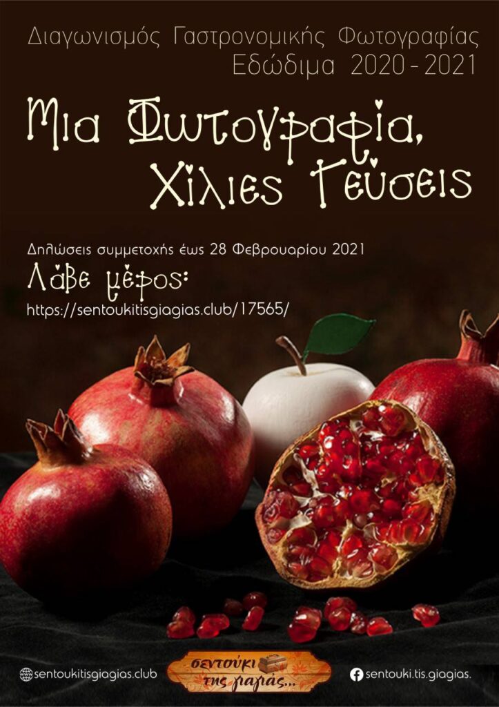 Να λοιπόν πεδίο δόξης λαμπρό να συμμετάσχει κάποιος αναδεικνύοντας την ομορφιά της ελληνικής κουζίνας κι όχι μόνο, με επιρροές από τα Βαλκάνια, την Ανατολή, με τις προκλήσεις των μεζέδων, τις ποικιλίες τσίπουρου, τις συνοδευτικές πιατέλες των κρασιών ή της μπύρας, τα τουρσιά, αλίπαστα και τόσους γευστικούς πειρασμούς που μπαίνουν στο τραπέζι μας. Με ένα εμπνευσμένο κλικ παίρνοντας μέρος στον διαγωνισμό και πιστεύοντας ότι “μια φωτογραφία είναι 1000 γεύσεις!” μπορεί να ζήσετε όμορφες στιγμές.