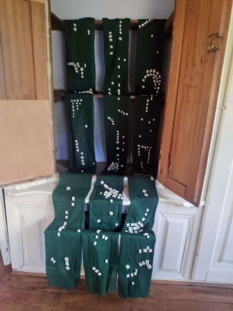 Οι αριθμοί μπαίνουν στα στιμόνια και αλγοριθμικά διαμορφώνεται το μοτίβο του υφαντού, του χαλιού που διακοσμείται με μπλε χάντρες για να σχολιάσει πως τα μοτίβα από τα χαλιά μπορούν να καταγράψουν τις ανθρώπινες ροές. Δείχνει, δε, πως μέσα από την τέχνη που έφεραν οι γυναίκες πρόσφυγες, γεννήθηκε η ταπητουργία που δεν υπήρχε στην Ελλάδα. Μέχρι τότε υπήρχαν μόνο φλοκάτες, βελέντζες και ο αργαλειός τους ήταν το εργαλείο για να επιβιώσουν.