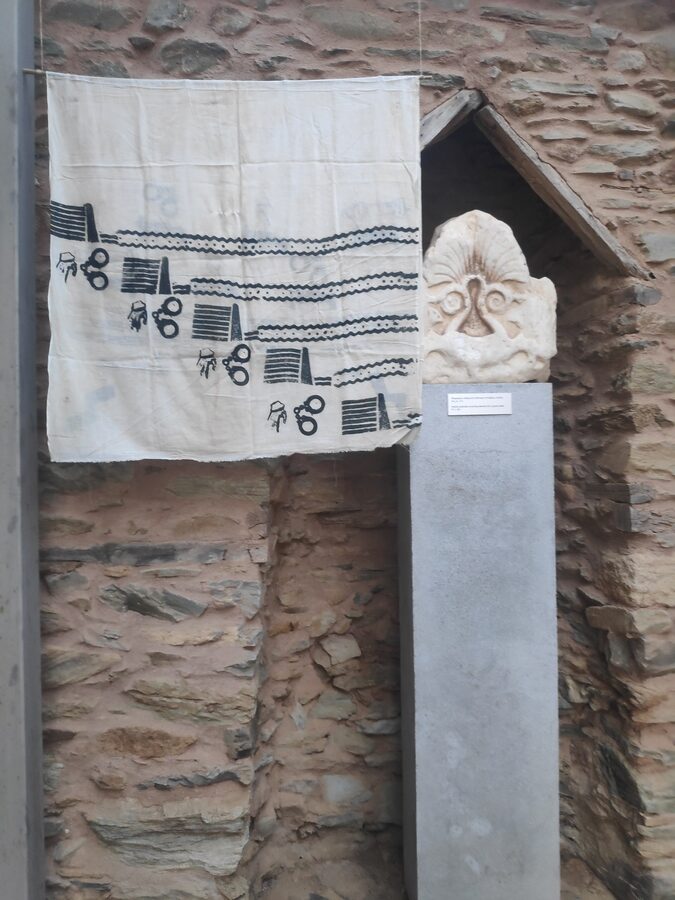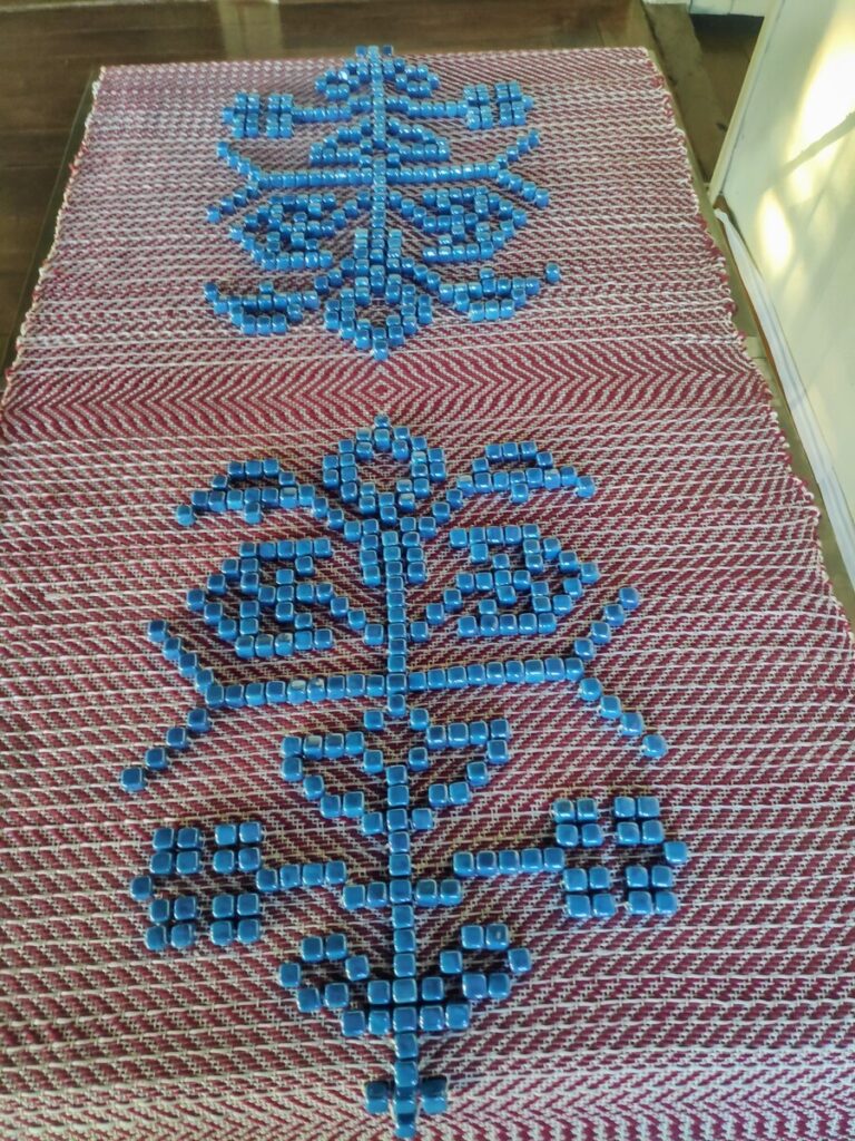 Η Μαρία Βαρελά επίκουρη καθηγήτρια Καλών Τεχνών στην ΑΣΚΤ Κοζάνης με μεταπτυχιακές σπουδές στο Λονδίνο, παρούσα στην έκθεση είχε την διάθεση να αναφερθεί στο έργο της, ένα εντυπωσιακό υφαντό με μοτίβα από χάντρες και το συμβολισμό του.