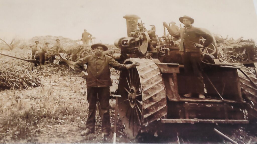 Σε άλλο σημείο του κτήματος, μια σειρά από μηχανήματα – τρακτέρ – που το καθένα έχει τη δική του ιστορία. Θα σταθούμε στο πιο χαρακτηριστικό: το ερπυστριοφόρο 65 ίππων που παρήγγειλε το 1938 ο πατέρας του κ. Κράββα από την Allis-Chalmers, από την Αμερική, κι έφθασε με πλοίο μετά από μήνες.