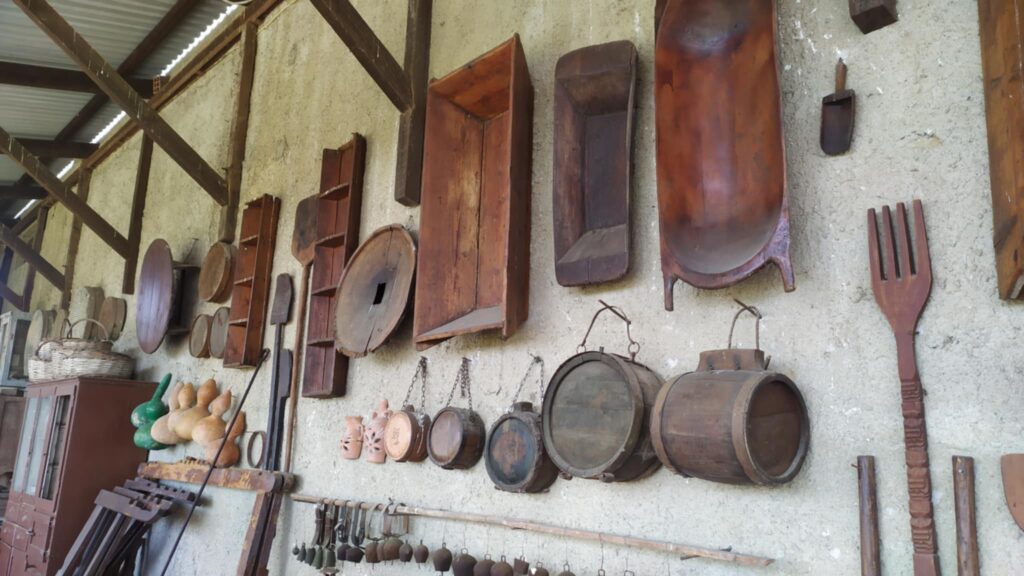 Ακόμη, οι περίτεχνες πόρτες πατρικού σπιτιού, η πρώτη μοτοσυκλέτα της οικογένειας 80 ετών, αυθεντικά καλάθια σε διάφορα μεγέθη για κάθε χρήση, παγίδες για λύκους και τσακάλια, φανάρια ασετυλίνης που εγκατέλειψαν οι Γερμανοί από τον πόλεμο του ’40.