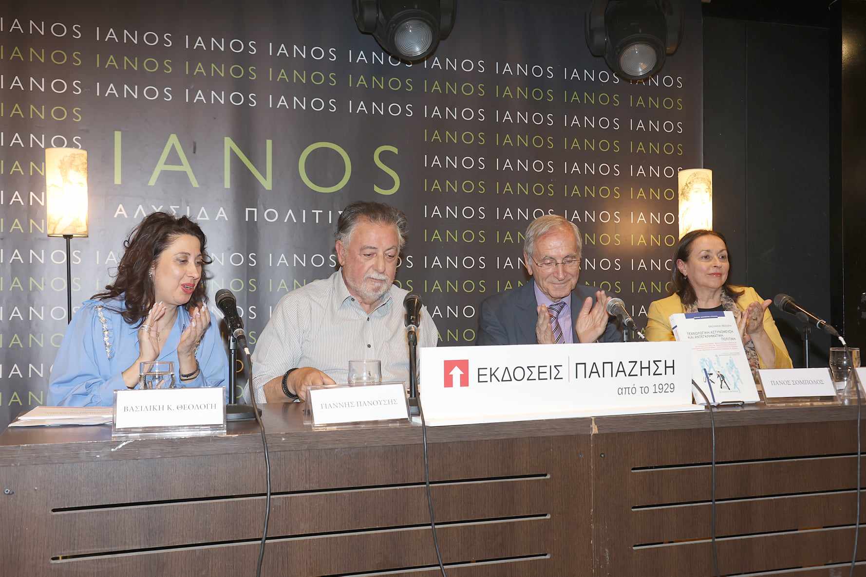 Οι συνομιλητές στην παρουσίαση του βιβλίου ήταν όλοι σχετικοί με το αντικείμενο: Ο πρώην πρύτανης και τέως υπουργός Δημόσιας Τάξης Γιάννης Πανούσης, πάνω από 20 χρόνια καθηγητής εγκληματολογίας στο ΔΠΘ, ο καταξιωμένος δημοσιογράφος αστυνομικού ρεπορτάζ και συγγραφέας Πάνος Σομπολος και η Χριστίνα Ζαραφωνίτου, καθηγήτρια εγκληματολογίας. Όλοι συνεχάρησαν τη συγγραφέα-επιστήμονα για το πόνημά της συστήνοντας το για τους ορίζοντες που ακουμπά.