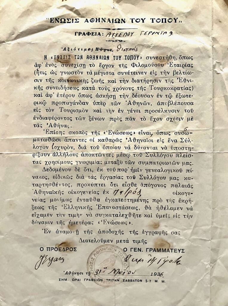 Στις μέρες μας το ερώτημα ακούγεται παράδοξο, αν δεν ηχεί τελείως γραφικό… Και όμως το 1936 είχε συσταθεί στην Αθήνα η Ένωσις Αθηναίων του Τόπου! Επρόκειτο για συσπείρωση η οποία πρόθεσή της είχε να συνεχίσει το έργο της ιδρυμένης το 1813 από Αθηναίους προκρίτους και υποστηριζόμενης από Άγγλους Φιλομούσου Εταιρείας.