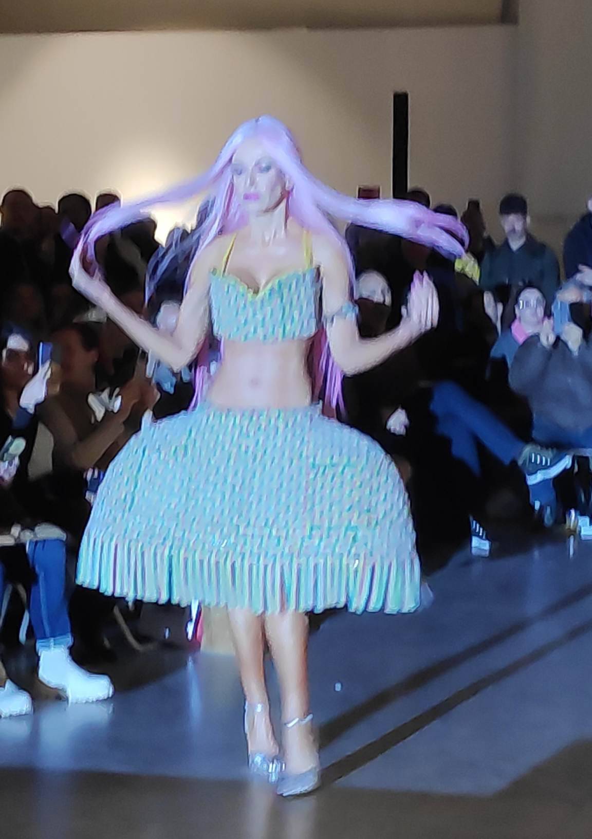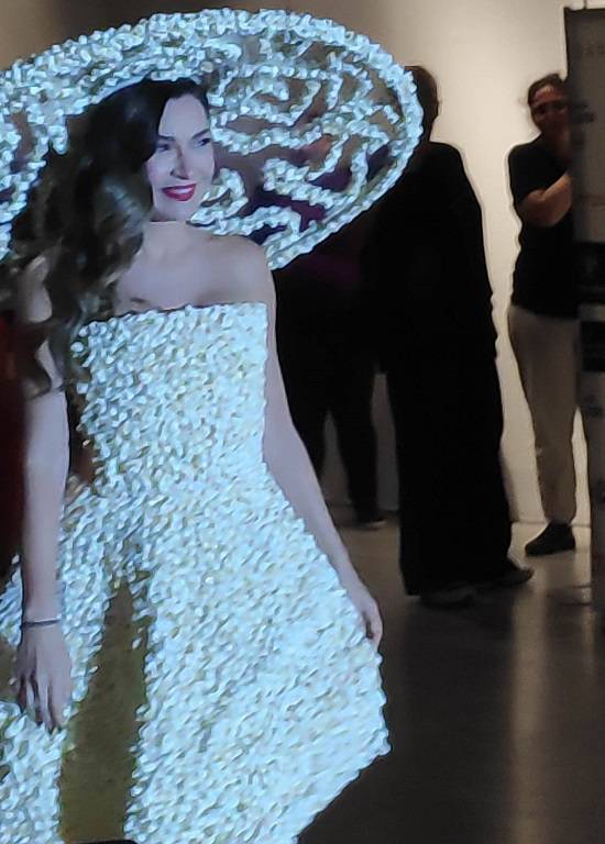 Πως θα φανταζόμασταν αλήθεια ένα κομψό σύνολο με 20.000 σταφίδες σουλτανίνα, ένα αέρινο νυφικό με άπειρες βάφλες, ένα αποκαλυπτικό ντεπιές με ζελεδάκια ή ποπ κόρνερ; Μάρτυρες σ’ αυτή την “βρώσιμη” επίδειξη μόδας που ξάφνιασε, στην κυριολεξία και χειροκροτήθηκε για την ευρηματικότητα της, στο Μηχανουργείο της Τεχνόπολης, πολλοί κι επώνυμοι της αθηναϊκής σκηνής.