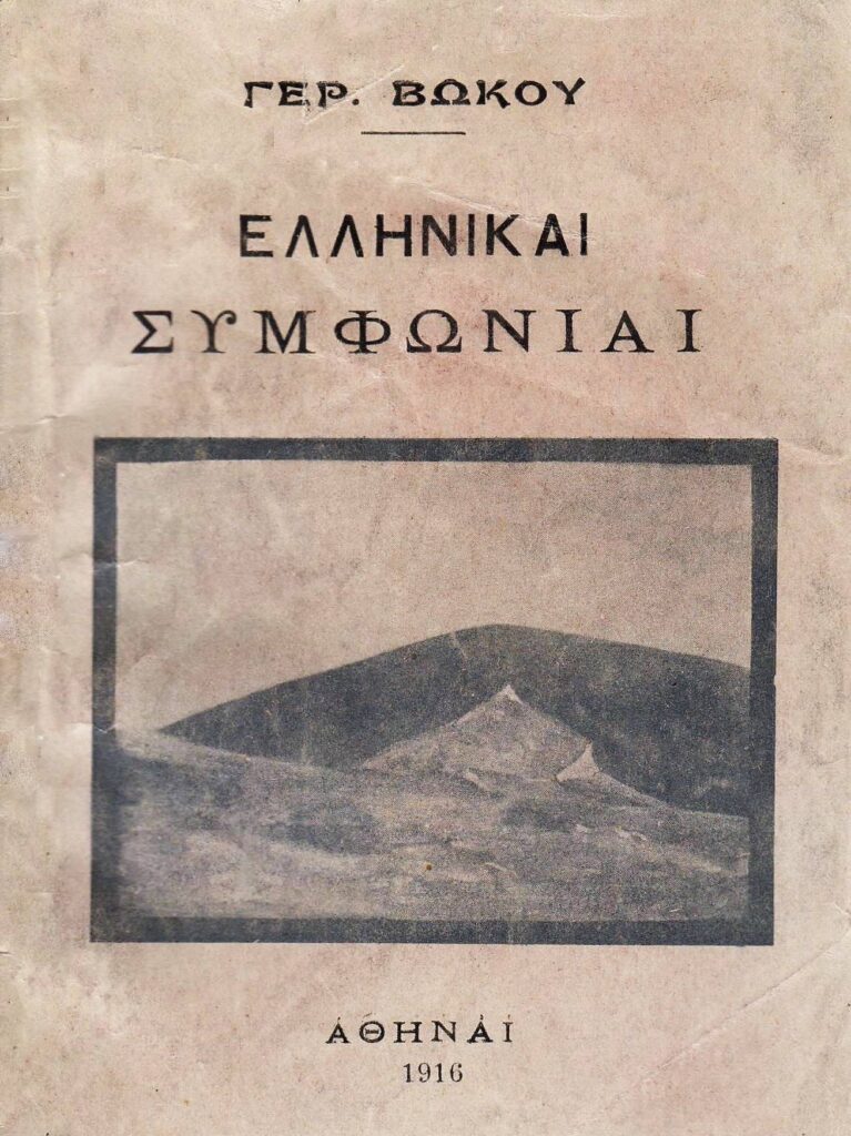 Δήλωνε προς τον Ρωκ ότι έπαψε πλέον να γράφει και ότι θα εκφράζεται μέσα από τα χρώματα, θεωρώντας τη ζωγραφική ως γλώσσα διεθνή. Δεν κράτησε τον λόγο του: το 1916 τύπωσε το ολιγοσέλιδο βιβλίο του “Ελληνικαί Συμφωνίαι”, με κείμενα του 1911. Διαβάζουμε: «Πρέπει να παραμερίζουμε όλα και να βρίσκουμε τον εαυτό μας ελεύθερο από κάθε συναισθηματικό περιορισμό, ασυγκίνητο από κάθε υπολογισμένο αίσθημα, πολύ ψηλά στην ουτοπία ακριβώς των ονείρων μας, των σκέψεών μας, στην όλη ελευθερία της ψυχής μας».