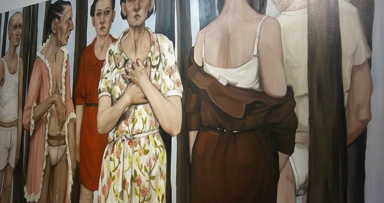 Ένα έργο της έκθεσης στο οποίο στάθηκα για ώρα είναι αυτό της Djurdjevic Biljana με τίτλο “Αόρατοι”. Φιγούρες ηλικιωμένων ανθρώπων, ντυμένοι με τέτοιο τρόπο ώστε να μοιάζουν ότι βρίσκονται μέσα στο σπίτι τους, βρίσκονται ξαφνικά –και αυτή είναι ιδέα που εκπλήσσει– “φυτεμένοι” στη φύση, ανάμεσα σε κορμούς δέντρων. Έκπληκτοι και μισόγυμνοι, οι καθημερινοί αυτοί άνθρωποι, μοιάζουν χαμένοι μέσα σε ένα περιβάλλον που το νιώθουν ξένο. Σαστισμένοι, ίσως γιατί μετά από μια ολόκληρη ζωή στην πόλη έχουν πια ξεχάσει που ανήκουν, ενώ, κανονικά, δεν παύουν να είναι ένα κομμάτι της φύσης.