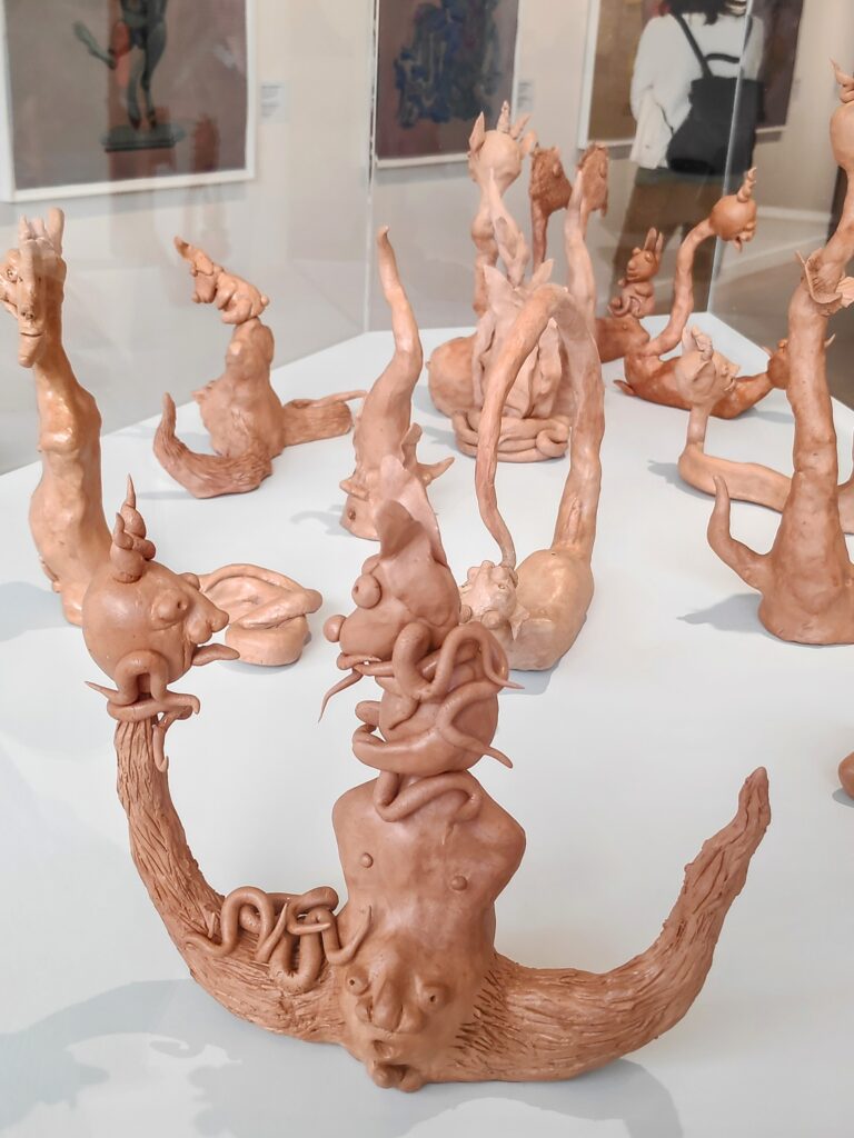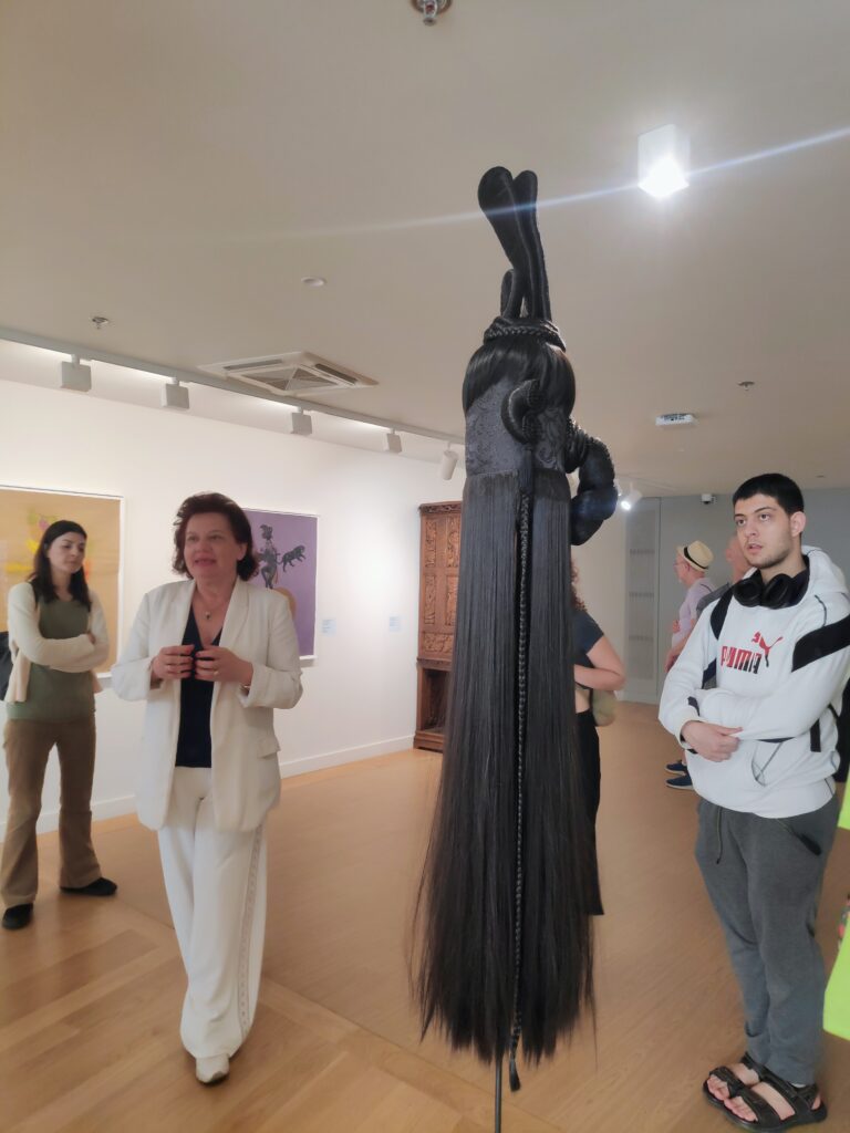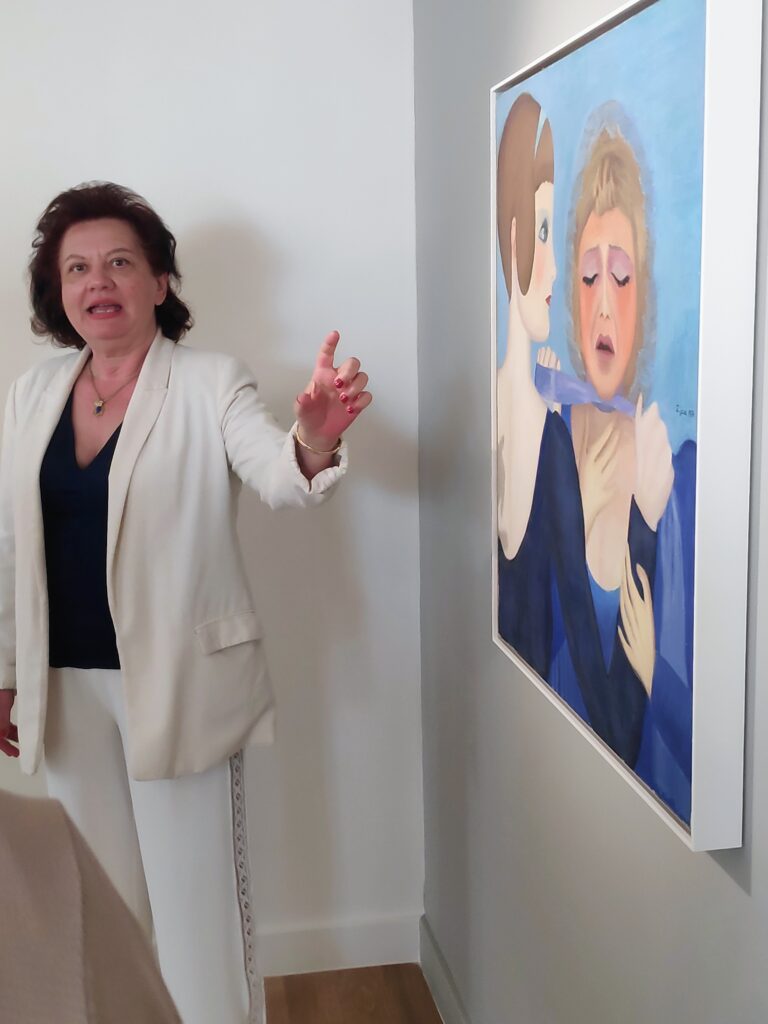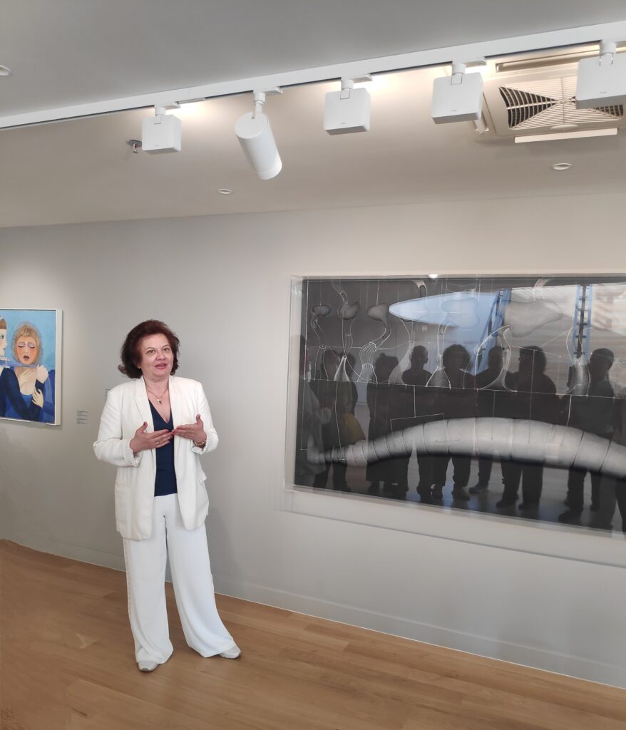 Χθες η διευθύντρια της πινακοθήκης υποδέχθηκε το κοινό,-υπήρχε ελεύθερη είσοδος στην προγραμματισμένη αυτή ξενάγηση- αν και ήταν μόνο 13 άτομα μιλώντας τους για την προσέγγιση των συμμετεχόντων στην ενότητα αυτής της ιδιαίτερης έκθεσης που διευρύνει την σκέψη κι επιβεβαιώνει οπτικές και συνθέσεις που δεκαετίες πριν ήδη εξέφρασαν με τα έργα τους μεγάλοι καταξιωμένοι καλλιτέχνες. Στάθηκε σε όλα τα έργα που παρουσιάζονται ένα προς ένα, συστήνοντας τους δημιουργούς τους και ερμηνεύοντας την οπτική τους τον ανθρωπομορφισμό, τον βιομορφισμό όπως αναδύεται με τον αισθησιασμό του έρωτα τα υβριδικά στοιχεία και την γοητεία που ασκούν.