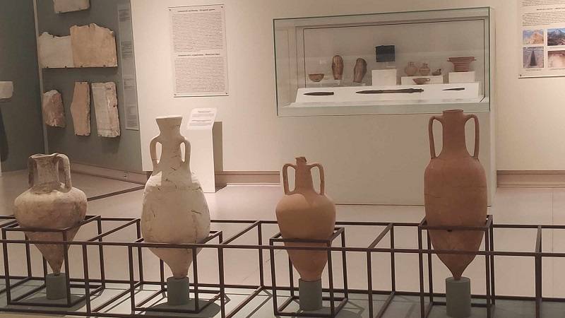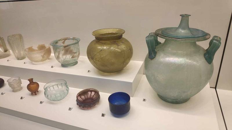 Ξεχωρίζουν είδωλα θεών κι ανθρώπων με πολλά αντικείμενα του ιδιωτικού και του δημόσιου βίου των αρχαίων που εντυπωσιάζουν για τα σχέδια, την αισθητική και την ευρηματικότητα τους. Γυάλινα-πήλινα σκεύη, μεταλλικά, σκιάστρα και διακοσμητικά παραθύρων, περίτεχνα, εντυπωσιακά ψηφιδωτά, με ελληνικές επιγραφές και ολοζώντανες απεικονίσεις…