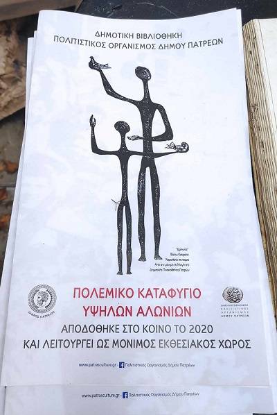Ο πολιτιστικός οργανισμός του Δήμου Πατρέων και η Δημοτική Βιβλιοθήκη λειτουργούν από το 2020 ως μόνιμο εκθεσιακό χώρο το συντηρημένο καταφύγιο στα Ψηλά Αλώνια, δίνοντας την ευκαιρία στον επισκέπτη να νιώσει στιγμές αγωνίας των ανθρώπων που προσέτρεχαν σ αυτό για να σώσουν την ζωή τους από δύσκολες συνθήκες της γερμανικής κατοχής.