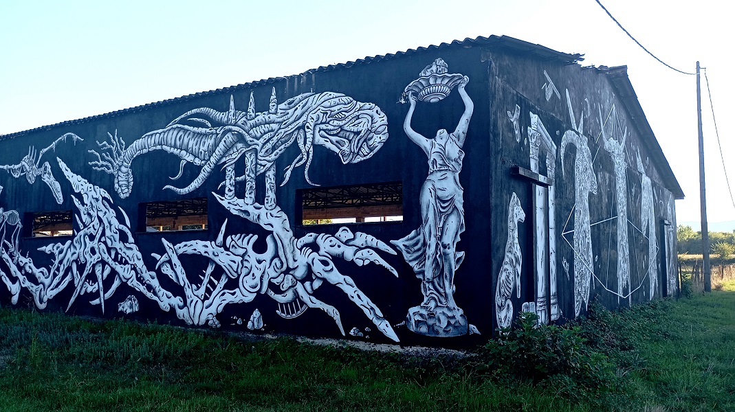 Το περασμένο Σάββατο έζησα μια μοναδική εμπειρία. Αποκαλύφθηκε μπροστά στα μάτια μου ένα μοναδικό σύνολο τοιχογραφιών, μόλις πέντε χιλιόμετρα από το κέντρο της Καρδίτσας, που φιλοτεχνεί εδώ και πέντε (5) χρόνια σε καθημερινή βάση (!) ο ζωγράφος και street artist, Γιάννης Jola, σε έναν χώρο 100 στρεμμάτων και σε εγκαταλειμμένα κτίρια, που στέγαζαν παλιά το ιπποφορβείο της πόλης και την τεχνητή σπερματέγχυση ζώων.