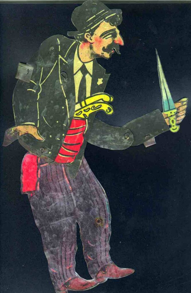Οι φιγούρες κολλιόντουσαν πάνω σε ό,τι χαρτόνια έβρισκαν τα παιδιά, παραδείγματος χάρη από κουτιά παπουτσιών, λουκουμιών, συσκευασιών…, καταλαβαίνετε και μετά γινόταν ψαλίδισμα για να μείνει μόνο η φιγούρα. Φυσικά φαινόταν μόνο το περίγραμμα μιας μαύρης σκιάς, αλλά όλοι καταλάβαιναν ποια φιγούρα ήταν, αφού όλα τα πρόσωπα ήταν τόσο διαφορετικά και τόσο χαρακτηριστικά.