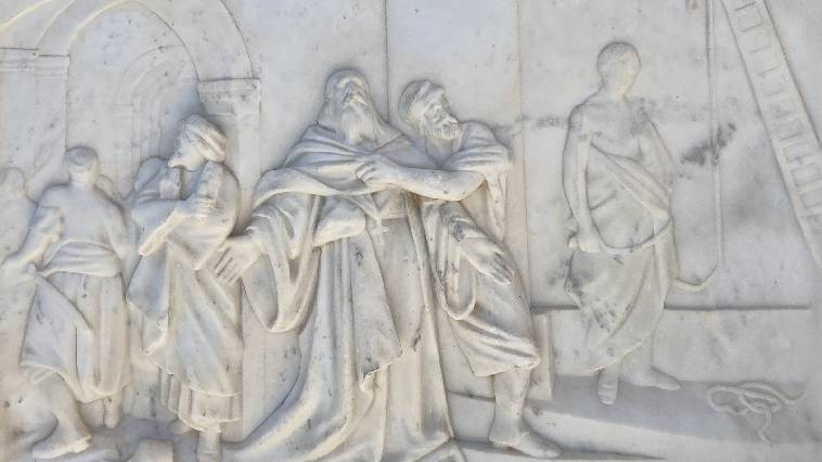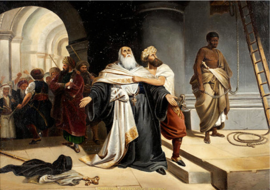 Το 1873 εκτέθηκε στη Διεθνή Έκθεση της Βιέννης ο πίνακας του Νικηφόρου Λύτρα (1832-1904) με θέμα τον απαγχονισμό του πατριάρχη Γρηγορίου Ε΄ (Γεώργιου Αγγελόπουλου, 1746-1821) και βραβεύθηκε. Το συγκεκριμένο ζωγραφικό έργο έχει γίνει αντικείμενο αντιγραφής από τον μαθητή του Λύτρα, γλύπτη Γρηγόριο Ζευγώλη (1886-1951) στο βάθρο του ηρώου Κερατέας.