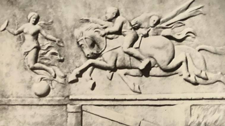 Η αντιγραφή ή η παραλλαγή ζωγραφικών έργων στη νεότερη ελληνική γλυπτική δεν είναι ασυνήθιστο φαινόμενο, ήδη από το δεύτερο μισό του 19ου αιώνα. Σε μαρμάρινη ανάγλυφη σύνθεση ταφικού μνημείου στο Α΄ Κοιμητήριο Αθηνών εντοπίζεται κατά γράμμα μεταφορά του πίνακα του Γερμανού ζωγράφου Rudolf Friedrich August Henneberg (1826-1876) “Αλληγορία του Κυνηγιού της Ευτυχίας”, έργου που χρονολογείται το 1868, στην Παλαιά Εθνική Πινακοθήκη Βερολίνου (Κρατικά Μουσεία Βερολίνου).