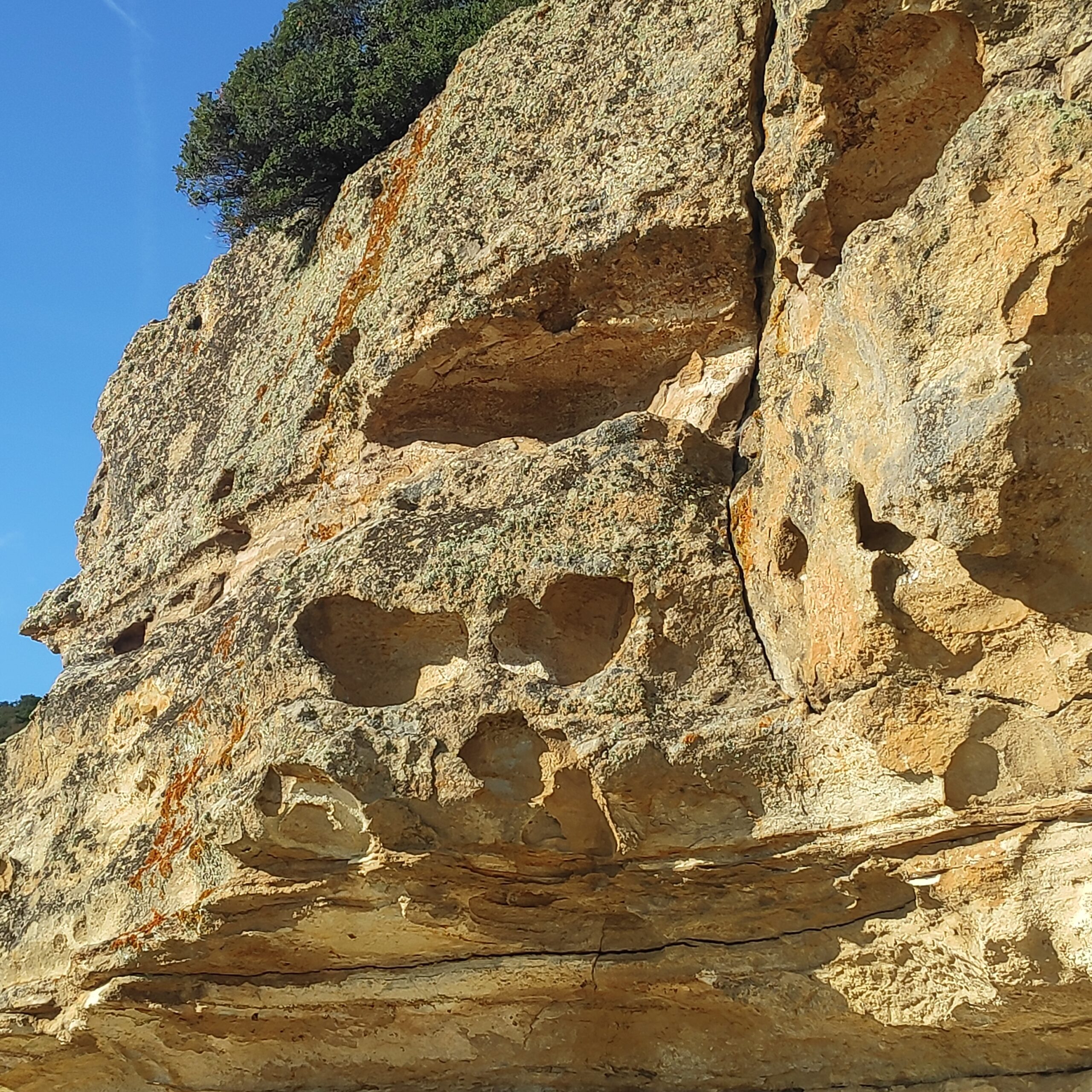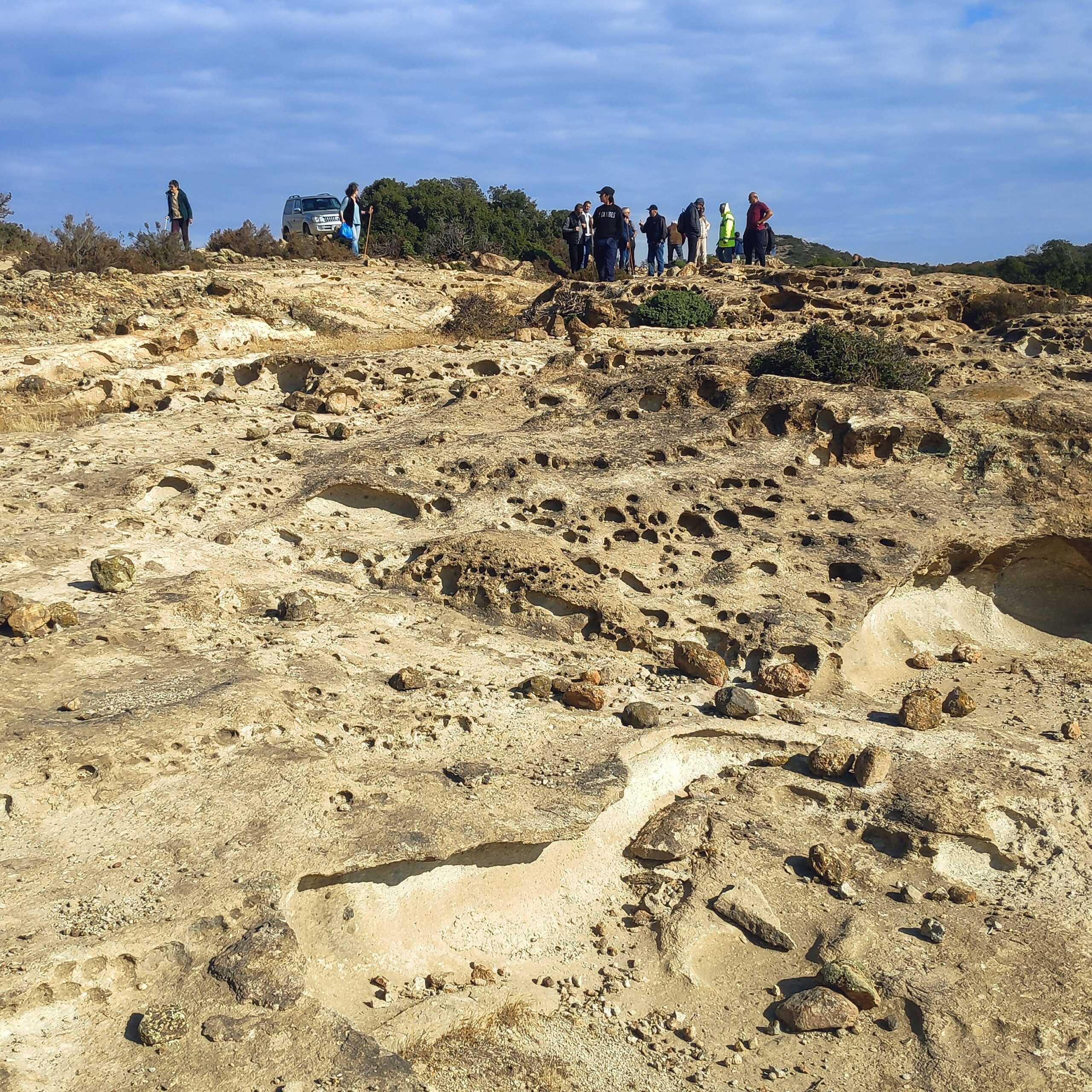 Βράχια γλυπτά, ογκώδη, να ξεπροβάλουν μέσα από τα πουρνάρια, λαξευμένα με τα διάτρητα μάτια της γυναικείας θεότητας, σπήλαια με κόγχες που μαρτυρούν ανθρώπινη παρέμβαση, λατρευτικοί χώροι με βωμούς κι άλλα ευρήματα που ο ρέοντας επεξηγηματικός λόγος του καθηγητή φωτίζει πτυχές της ιστορίας της περιοχής, άγνωστες στους περισσότερους εθελοντές περιπατητές που αποφάσισαν να τα ανακαλύψουν μαζί του.