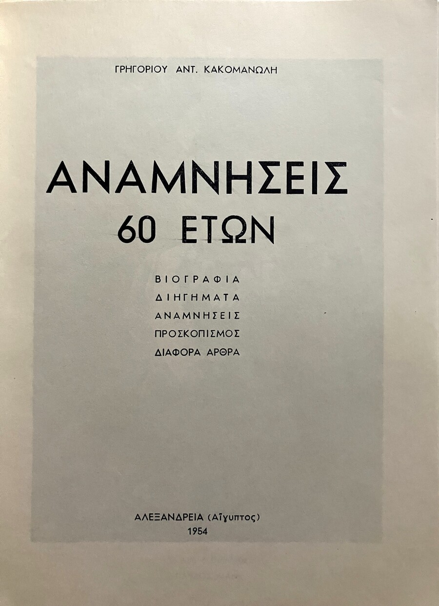 Το 1954 ο, γεννημένος στην Αγία Μαρίνα της Κάσου, Γρηγόριος Αντ. Κακομανώλης (1884-1963) προχώρησε στην Αλεξάνδρεια της Αιγύπτου σε αυτοέκδοση βιβλίου 248 σελίδων με τις αναμνήσεις του 60 ετών, προσφορά στο νοτιότερο νησί των Δωδεκανήσων. Συμπεριέλαβε τη βιογραφία του, διηγήματα, την ενασχόλησή του με τον προσκοπισμό και διάφορα άρθρα.