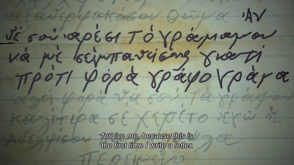 «Μέσα στα δέματα βρήκαμε πολλά –μέχρι και πασατέμπο που έμεινε μέσα σε ένα σακουλάκι από το 1951, έγγραφα, αιτήσεις που έδειχναν τον πόνο και τα βάσανά τους, αιτήσεις για πολεμική σύνταξη, για αλλαγή θέσης στο “Σωτηρία”, κάρτες, αποδείξεις, συνταγές, αλλά, και φύλλα πορείας στον στρατό, πιστοποιητικά απορίας και άλλα πολλά», λέει η δημοσιογράφος, που όπως και η σκηνοθέτης έκλαψε πολλές φορές στη διάρκεια των γυρισμάτων.
