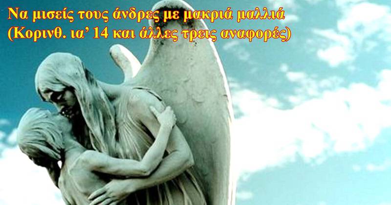 - Οι γυναίκες αξίζουν λιγότερο από τους άνδρες και οφείλουν υποταγή! Αυτό το λέει ο Παύλος τρείς φορές, για να το χωνέψουμε. (Κορινθίους ια’ 5-10), (Εφεσίους ε’ 22-24) και Κολασσαείς (γ’ 18,Α).