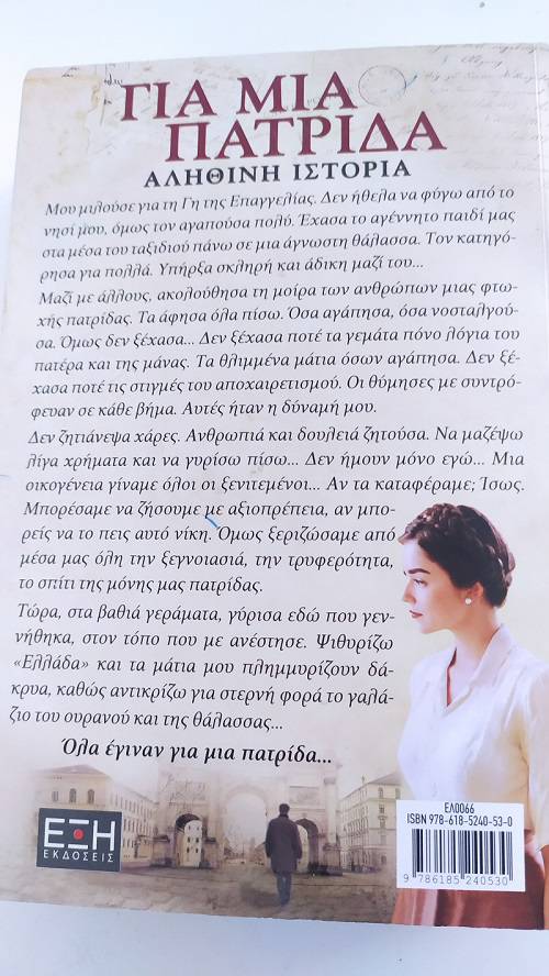 Με ηπειρωτικές ρίζες η συγγραφέας που ζει και δραστηριοποιείται στην Κομοτηνή, με το τελευταίο βιβλίο της “Για Μια Πατρίδα” των εκδόσεων “Έξη”, αγγίζει τόσο εύγλωττα την υπόθεση της προσφυγιάς μέσα από βιωματικές μαρτυρίες ανθρώπων που την ένιωσαν στο πετσί τους, καταφέρνοντας όχι απλά να περιγράψει το φαινόμενο, αλλά να σπαράξει η ψυχή μας με όσα συνάντησαν στις νέες χώρες που ήταν το αποκούμπι τους για να εξασφαλίσουν τα προς το ζειν, στερούμενοι όλη την ομορφιά της ζωής με τα αγαπημένα τους πρόσωπα που άφηναν πίσω…