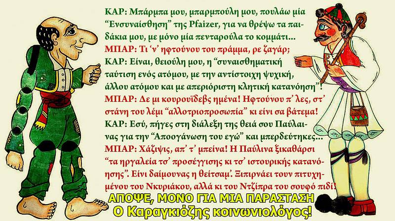 Τέλος, αναρωτιέμαι, τι είναι πιο επικίνδυνο, από κοινωνική άποψη: Ο “Κovid” ή η “ενσυναίσθηση”; Θα απαντήσω, η “ενσυναίσθηση”, γιατί δεν υπάρχει εμβόλιο για δαύτηνε! Περαστικά στους χρήστες της και τους ενημερώνω ότι η λέξη “ενσυναίσθηση”, στην ορατή πλευρά της, είναι μία απλή “μάσκα” για πονηρό κρυφτούλι, ενώ στην αθέατη πλευρά της, είναι η “μάσκα, της μάσκας” που προσπαθεί να κρύψει (εις μάτην) πληγές!