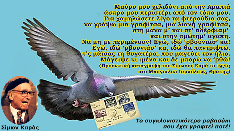 Περιστέρια και κρανία, ταχυδρόμοι σ’ αγρυπνία…