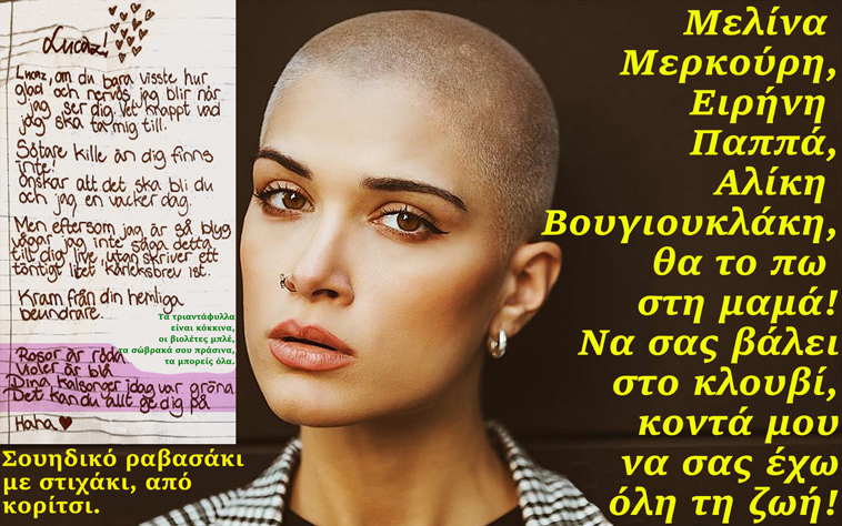Εγώ, που ήμουν καλός στο “θέατρο” και στην “απατεωνία”, κυρίως όταν είχα να κάνω με “εξουσιαστές” (γραβάτες, στολές, ράσα), πήρα μία “Μετάφραση” που ήταν κάτω από το βιβλίο με τις ερωτικές επιστολές, πήγα στον κύριο καθηγητή και του είπα ότι διαβάζαμε ένα κομμάτι από τη μετάφραση, γιατί δεν μπορούσαμε να καταλάβουμε το αρχαίο κείμενο… Και γυρνώντας στους άλλους ρώτησα «έτσι δεν είναι παιδιά;» Κι οι άλλοι, λες κι απόδρασαν απ’ την ταινία “Το ξύλο βγήκε απ’ τον παράδεισο”, με την Παπασταύρου και την Γιαδικιάρογλου (επίθετα γνωστών γερμανοτσολιάδων… – Θ. Αγγελόπουλε, “κόλλησες” στην Αριστερή λάσπη), το επιβεβαίωσαν!