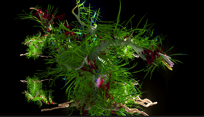 Η σχέση ψηφιακού και πραγματικού χώρου και των αντίστοιχων εμπειριών και τρόπων θέασης χαρακτηρίζει εξάλλου το όλο εγχείρημα καθώς το “Sheltered Gardens” (μέσω του link μπορείτε να πραγματοποιήσετε μία virtual tour) ξεκίνησε ως μία ψηφιακή έκθεση (που τρέχει παράλληλα με την φυσική έκθεση και είχε εξ αρχής σημείο αναφοράς τον συγκεκριμένο Βοτανικό Κήπο) και επεκτάθηκε με κάποιες παραλλαγές στον ίδιο τον Κήπο, όπου και εμπλουτίστηκε με ένα πρόγραμμα χορευτικών και εικαστικών επιτελέσεων.
