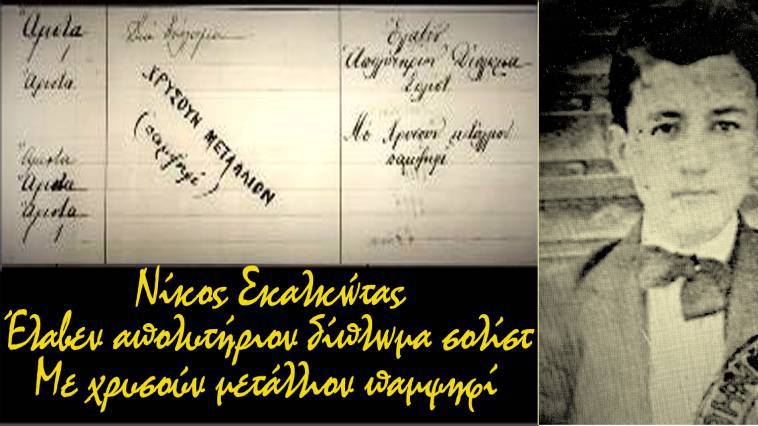 Θα αναφέρω εδώ, περισσότερο γιατί το βρίσκω μία σύμπτωση ταιριαστή και τρυφερή, ότι ο προπάππος του Νίκου Σκαλκώτα, ο Αλέξανδρος Σκαλκώτας, ήταν στην εποχή του πολύ γνωστός και αγαπητός βιολιστής, τραγουδιστής, αλλά και συνθέτης δημοτικών τραγουδιών (είμαι από αυτούς που δεν πιστεύουν στα θαύματα, αλλά στην απρόβλεπτη, επιστημονικά δυσπρόσιτη και συχνά παμπόνηρη, κληρονομικότητα, πιστεύω, με μόνη προϋπόθεση να μην παρεμβάλλεται “αναγκαιότητα”!). Το 1910 μετακόμισαν στην Αθήνα και ο Νίκος γράφτηκε στο Ωδείο Αθηνών. Το 1920 αποφοίτησε, με την μέγιστη διάκριση, η οποία ήταν “Χρυσό μετάλλιο”. Είχε παίξει στις εξετάσεις, το “Κονσέρτο για βιολί” του Μπετόβεν.