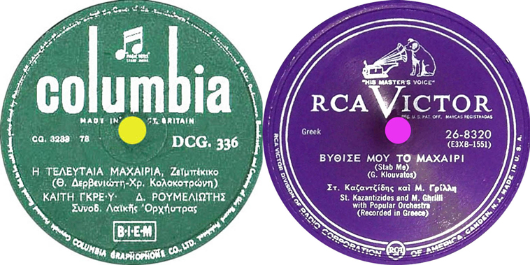 - Στου Μπεζεστένι την Αυλή (1932): «Μια μαχαιριά τού δώσανε… και …του δώσανε και άλλη μια στην πληγωμένη του καρδιά»