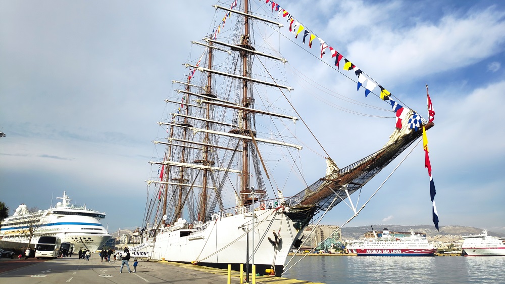 Η άφιξη του εντυπωσιακού τεράστιου ιστιοφόρου –ολοκληρώνει το ταξίδι του στον κόσμο και τώρα βρίσκεται στην προβλήτα 11 του Πειραιά– συνοδεύτηκε με φωταγώγηση και εντυπωσιακά πυροτεχνήματα ενώ από χθες άρχισε να δέχεται επισκέπτες που ξεναγούνται στο σκάφος. Κι εμείς είχαμε την δυνατότητα να δούμε τους χώρους του ΒAPUnion, το θάλαμο διακυβέρνησης, τους εσωτερικούς χώρους, τα τεράστια κατάρτια του, τις βοηθητικές λέμβους, μέχρι τα μαγειρεία, τους εκθεσιακούς χώρους, το κατάστρωμα τα πηδάλια κ.α.