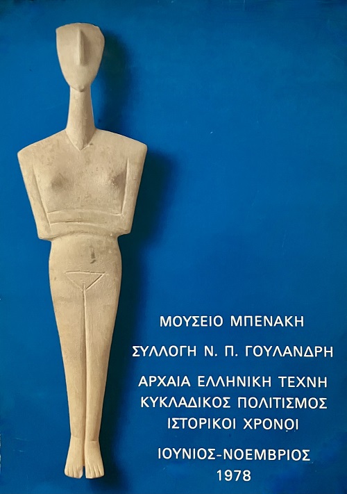 Το εξώφυλλο του καταλόγου της πρώτης έκθεσης αρχαίας τέχνης στο Μουσείο Κυκλαδικής Τέχνης με γυναικείο κυκλαδικό ειδωλίο του Πολιτισμού Κέρου-Σύρου, π. 2800-2300 π.Χ.