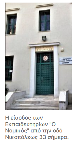 Στο προηγούμενο άρθρο προχωρήσαμε σε μία ιστορική αναδρομή του προγράμματος των νέων σχολικών κτιρίων της κυβέρνησης Ελευθερίου Βενιζέλου. Παραδειγματικό σχολείο αυτού του προγράμματος είναι το συγκρότημα των διδακτηρίων “Ο Νομικός” στην αραιοκατοικημένη συνοικία των Πατησίων, κάτω από την Πλατεία Κολιάτσου, κυριολεκτικά στην εξοχή, με πεύκα, με κυπαρίσσια, με πρασινάδα, και με μικρή ταβέρνα γραφική, τα “Κανάρια”, στην οποία πλήθος καναρινιών μέσα σε κλουβιά κελαηδούσε ―τελείως διαφορετική από την τωρινή εικόνα.