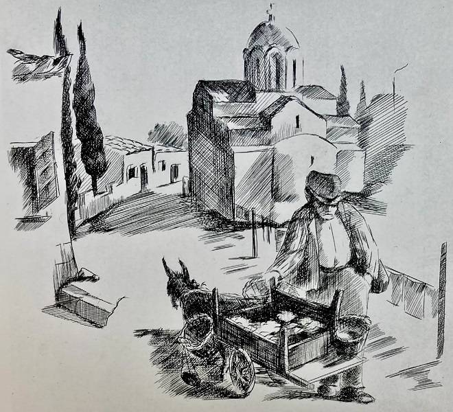 Κάθε πρωί στις εφτά όλοι ξυπνούσανε απ’ το ραδιόφωνο του στρατηγού, που με την κουφαμάρα του το ‘βαζε στη διαπασών για ν’ ακούσει τις πρωινές ειδήσεις. Κι ύστερα ξεσηκώνανε τη γειτονιά με τις φωνές τους οι πλανόδιοι διαλαλητάδες: ο γαλατάς με τα κιούπια του, ο μανάβης με τη σούστα του, ο ψαράς με το πανέρι του, ο παπλωματάς με το ξαντήρι του, κι ένα σωρό άλλοι· ο καθένας με τη μελωδική ή την άγρια φωνή του.