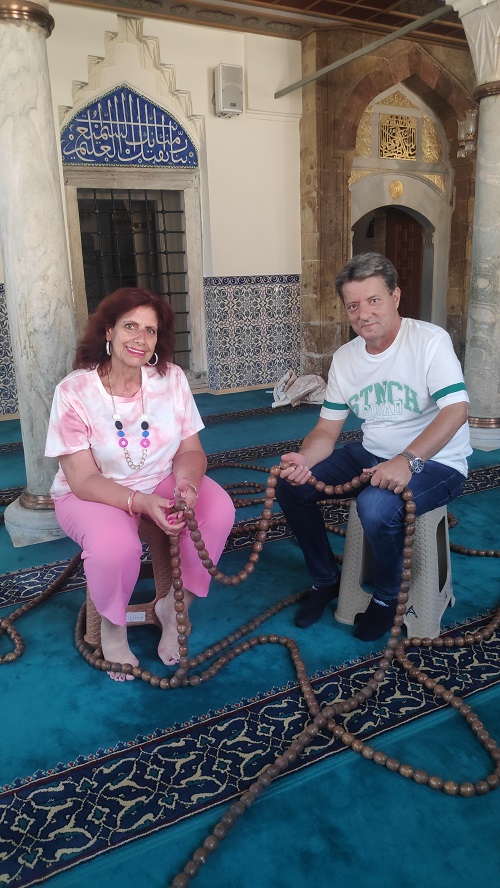 Την αίσθηση να το δούμε από κοντά, να το αγγίξουμε, να το φωτογραφίσουμε στο παλαιότερο τέμενος της Κομοτηνής στο Γενή τζαμί όπου μεταφέρθηκε, με την επισκέπτρια από την Αθήνα δημογράφο, ηθοποιό Χάρις Συμεωνίδου ήταν από τις ευτυχείς συγκυρίες κατά την παραμονή της που δεν επαναλαμβάνονται και μάλιστα με την γλαφυρή ενημέρωση του Ριτβάν Εμίν που μας έβαλε στο κλίμα δίνοντας πολλές πληροφορίες για τα τεμένη που επισκεφθήκαμε.