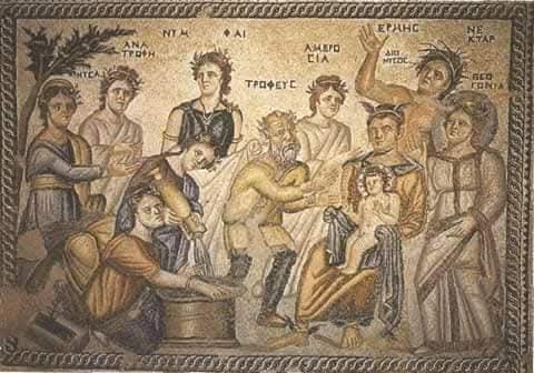 Χριστός γεννάται λοιπόν αλλά δοξάσατε και… Ερμήν τον Τρισμέγιστον, τον Θωθ των Αιγυπτίων, πατέρα κάθε ερμητικής γνώσης και δοξάσατε Διονύσον, τον πυριγενή και Διώ-νυσον τον μηροτραφή που ανατράφηκε δηλαδή στον μηρό του Δία (Ζεύς, ζωή, Δίας, Deus). Ανατολή ανατολών λοιπόν και θείον βρέφος μηρορραφέν, ποιμήν και παιδίον νέον, ο προ αιώνων… και 25η Δεκεμβρίου, εορτή του Μίθρα, του ηλιοφόρου.