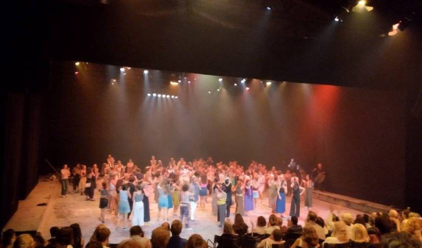 Η ομαδική εργασία απαιτεί και προκαλεί ρυθμό, ο ρυθμός γεννά χορό, ο χορός συλλογική έκφραση… Η Ποίηση έρχεται στο τέλος, εάν έρθει ως αδόμενο διονυσιακό αποτέλεσμα. Αλλιώς το στυγνό Απολλώνιο πνεύμα παραμονεύει ανθυπομειδιώντας σχολαστικά. Το διαδραστικό “party” τού τέλους με την αυθόρμητη κι ευκταία (παρακινούμενη από τους συντελεστές) χορευτική συμμετοχή των θεατών θύμιζε διαχρονική ντισκοτέκ.