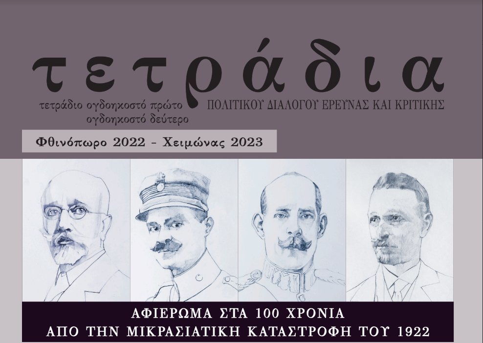 Τα νέο τεύχος των Τετραδίων Πολιτικού Διαλόγου Έρευνας και Κριτικής κυκλοφορεί με αφιέρωμα στα 100 χρόνια από την Μικρασιατική Καταστροφή.
